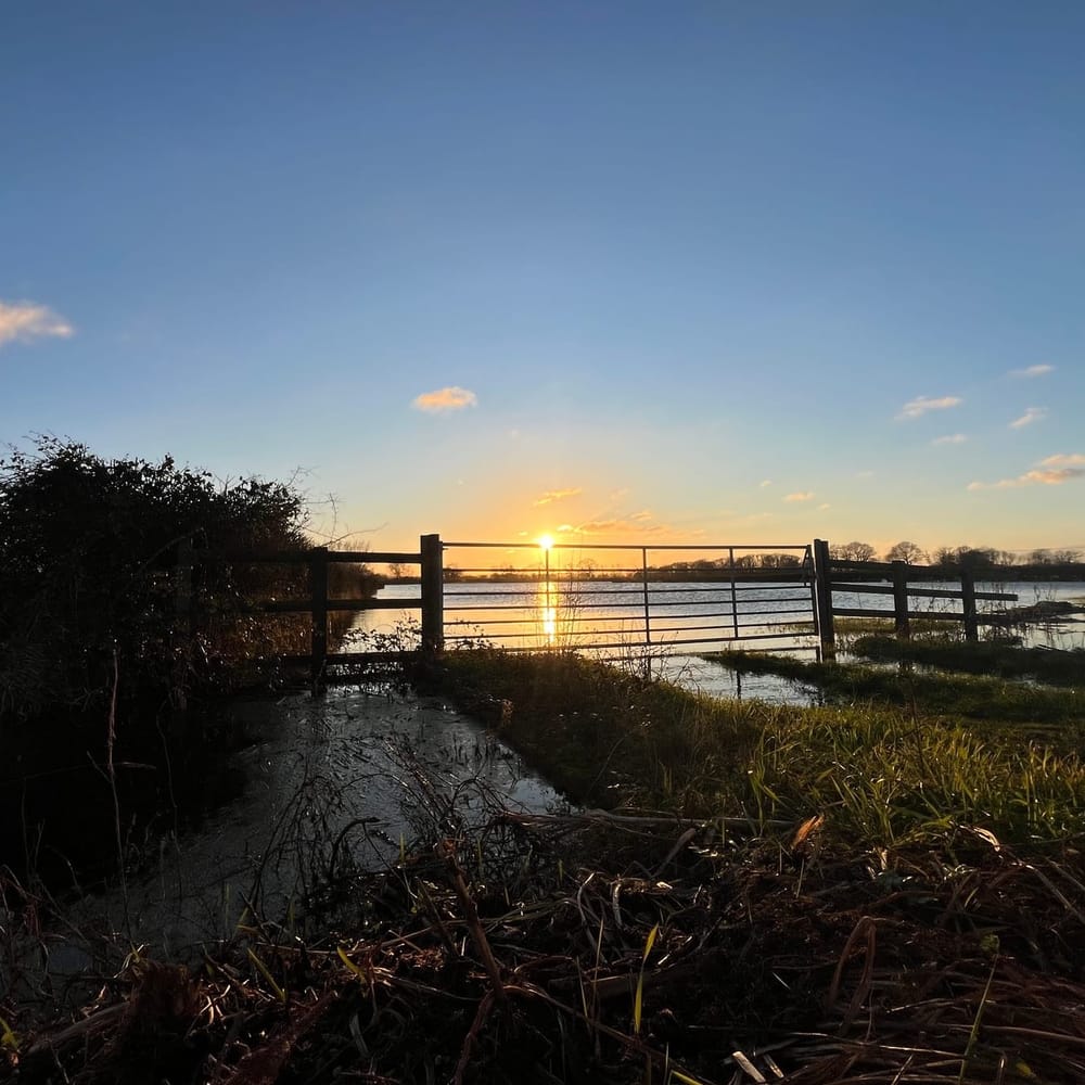 Looking towards the sun over flooded fields on the Somerset Levels at Christmas. When I was a kid, and if the floods froze, I'd skate here in my wellies.