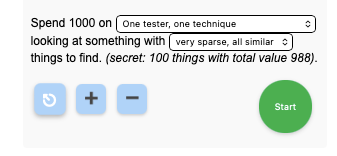 Go to https://exercises.workroomprds.com/discoverysim/3/index.html, and set the simulation to One tester, one technique / very sparse, all similar.