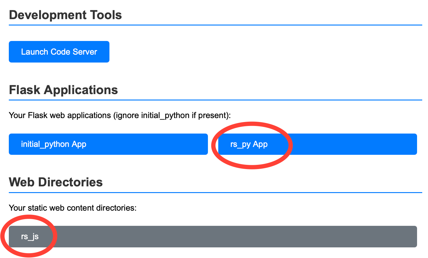 Play with the applications by going to your development environment entry and picking rs_py or rs_js App. They should be very similar – they pass broadly the same tests.